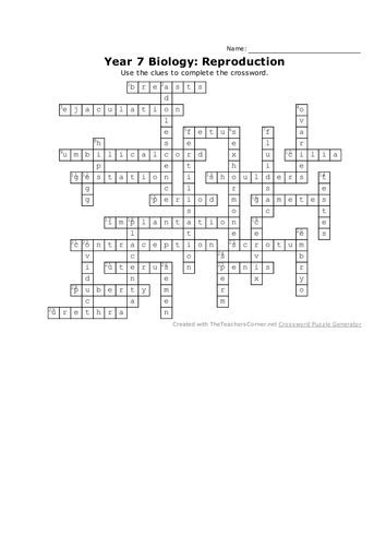 Neck of the uterus 5. To make a crossword puzzle free you need to submit your name and choose the level of complexity then press the Create yours tab and specify the title of your puzzle. This crossword puzzle Reproduction Review was created using the Crossword Hobbyist puzzle maker.