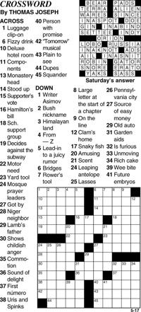 Increase your vocabulary and general knowledge. In this section of website we post daily answers and solutions for the Thomas Joseph Crossword. Become a master crossword solver while having tons of fun.